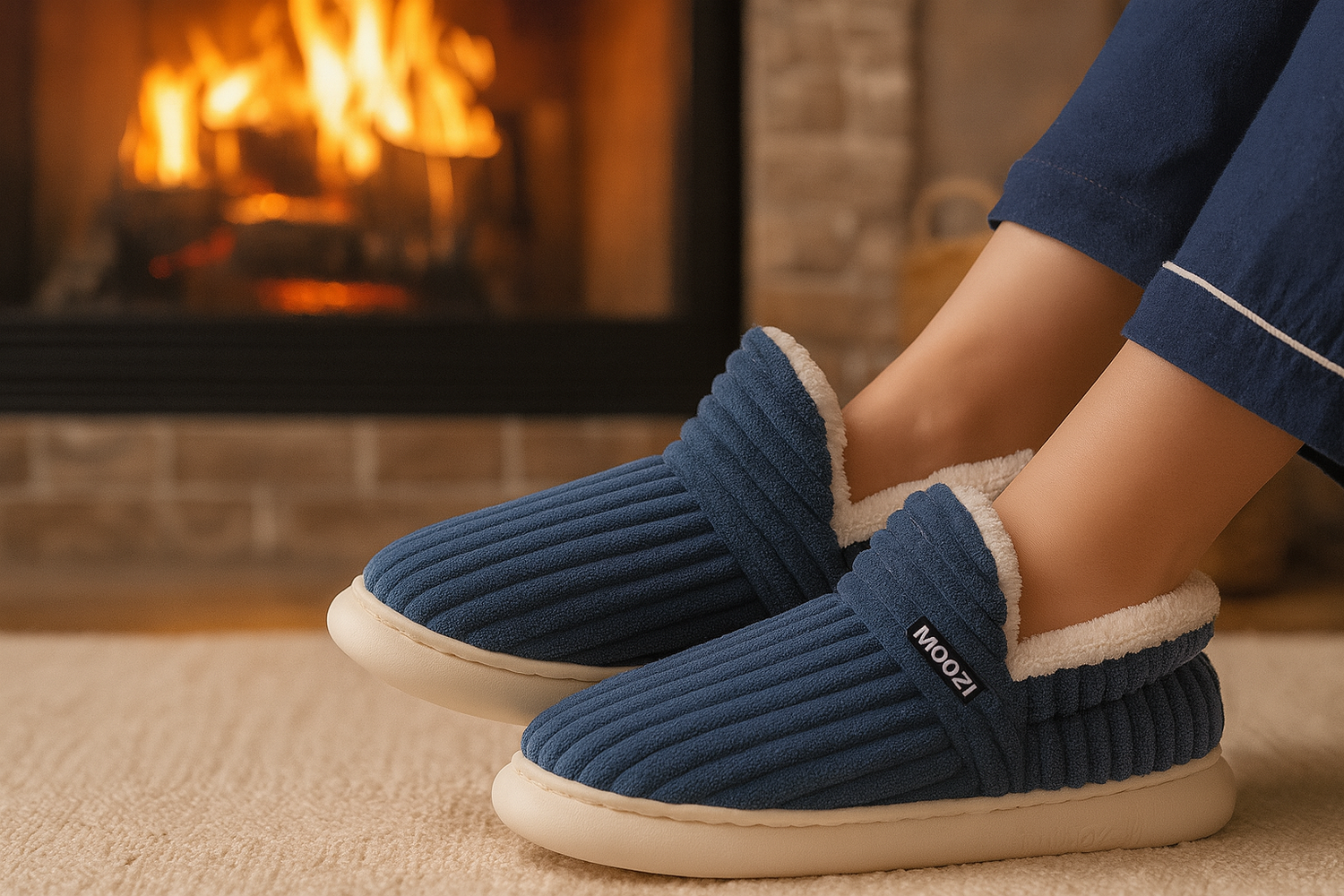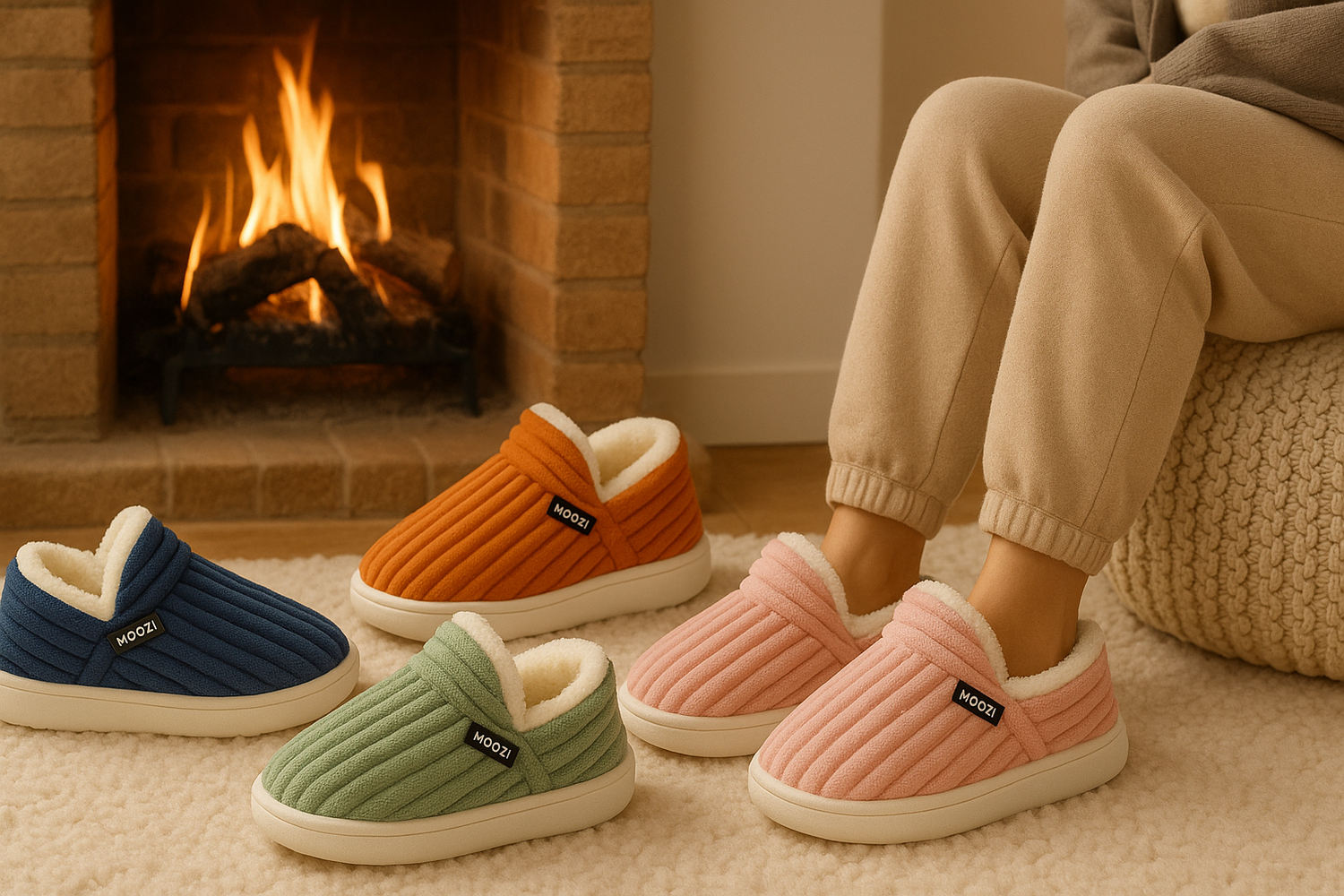 Avec leur design côtelé moderne et leur intérieur en fourrure douce, les chaussons MOOZI offrent un confort chaleureux sans sacrifier le style.